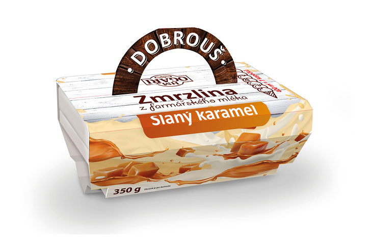 Zmrzlina Dobrouš už nějakou dobu existuje. Poté co se na trhu úspěšně uchytila, přišli výrobci s prosbou o tvorbu obalů k příchutím na míru. Současné obaly byly totiž pouze univerzální a příchuť si zákazník přečetl jen textově. Nyní ale přišel čas na změnu a každé jednotlivé příchuti jsme dali individuální vizuální podobu. Ta navazuje na již existující krabici, kde jsme zachovali složitou grafickou montáž ovoce a jiných příchutí s mlékem nebo jen samostatně pro zmrzliny typu Sorbet. Úspěch v podobě mnohonásobně zvýšeného prodeje na sebe nenechal dlouho čekat a spokojení.