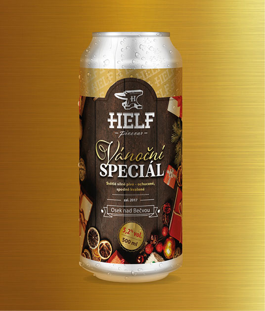 Pivovaru HELF jsme navrhli potisk plechovek pro jejich pivní stálice. Design tedy vycházel z námi už navržených etiket designu litrových PET lahví. Ten jsme přenesli na celou plochu plechovky a zapracovali tak, aby byl název pěkně čitelný i na rozměru plechovky.